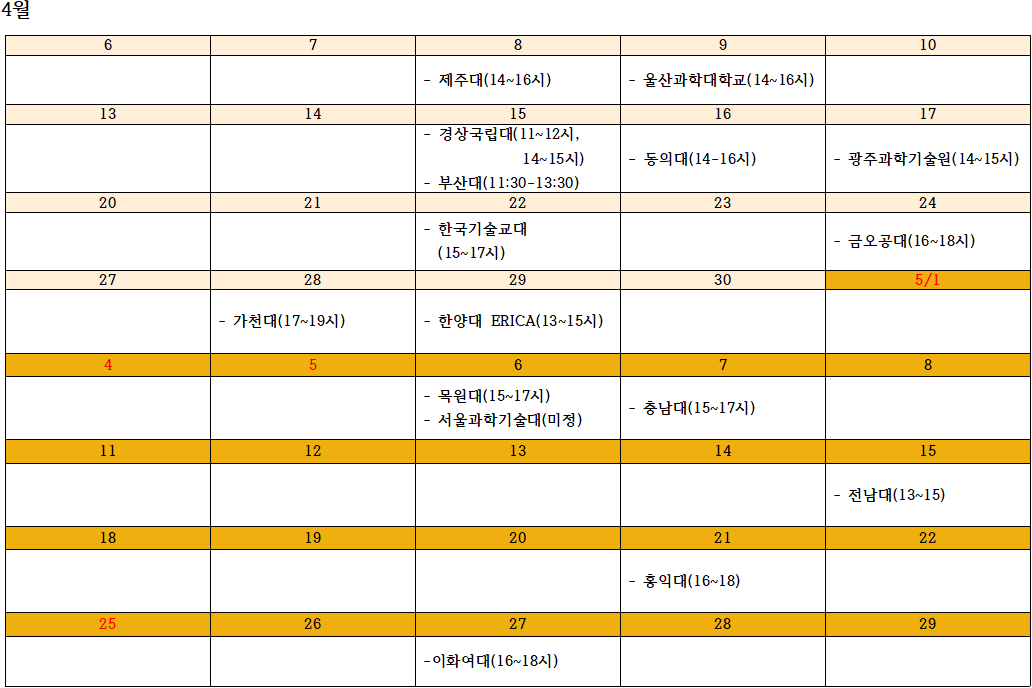 * 설명회 일정은 사무국 또는 학교 사정에 의해 변경될 수 있습니다.