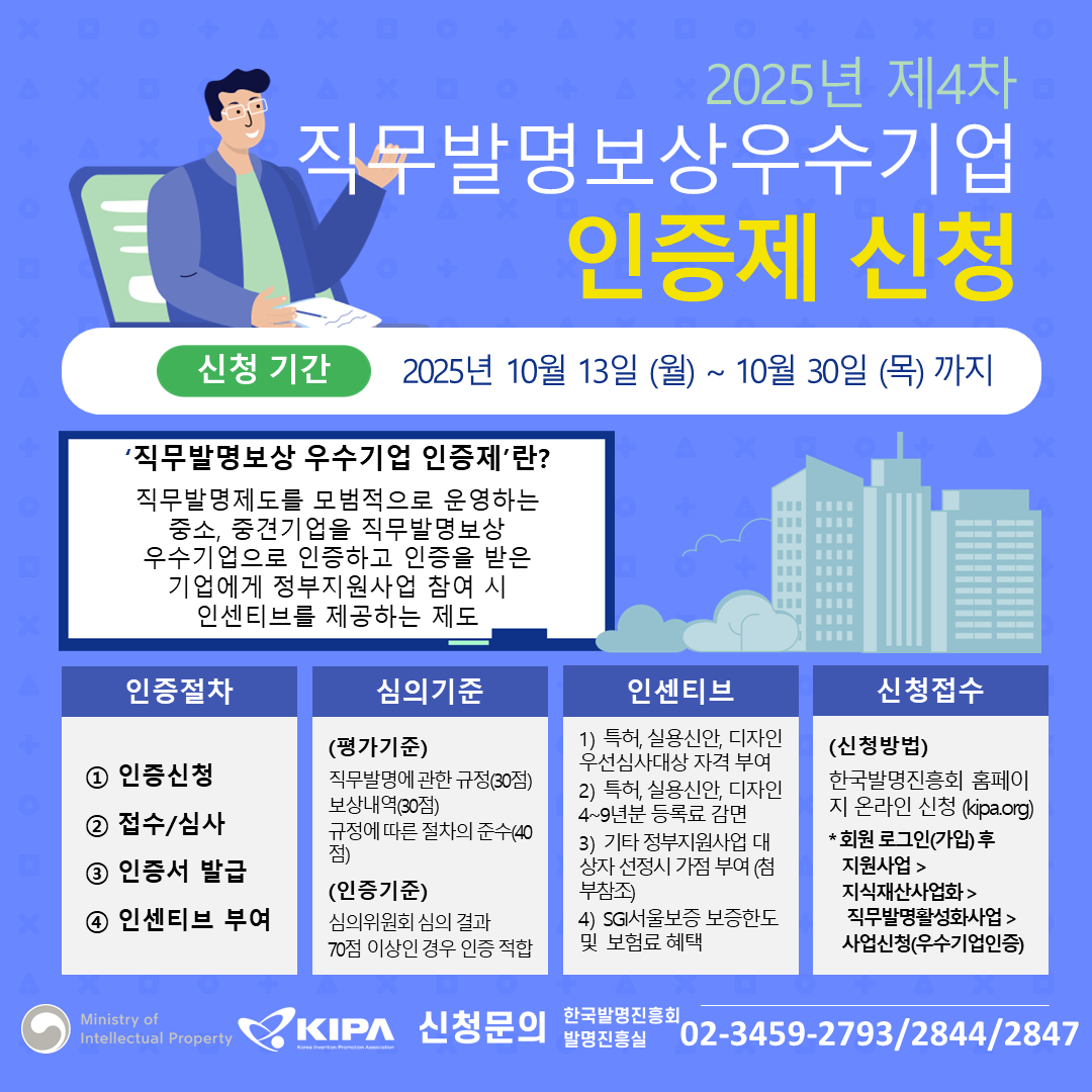 2025 제4차 직무발명보상 우수기업 인증제 신청 안내