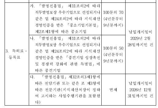 직무발명보상 우수기업 인증 연차등록료 감면 혜택 기간 연장(2029.2.28 까지)