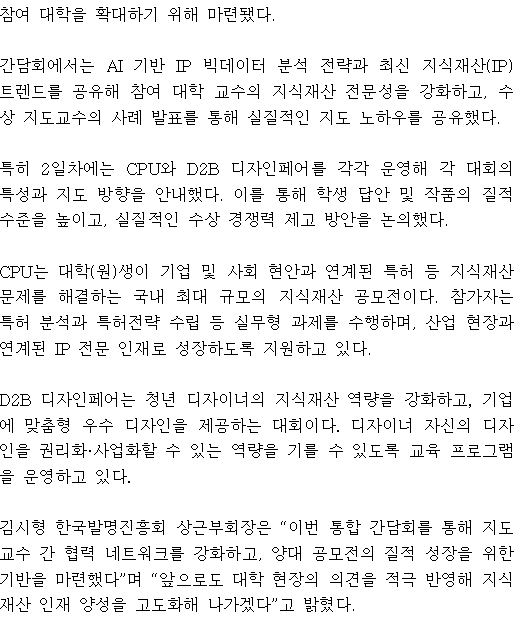 제목 [보도자료] 한국발명진흥회, 2026년 지식재산 대학 공모전 지도교수 간담회 성료