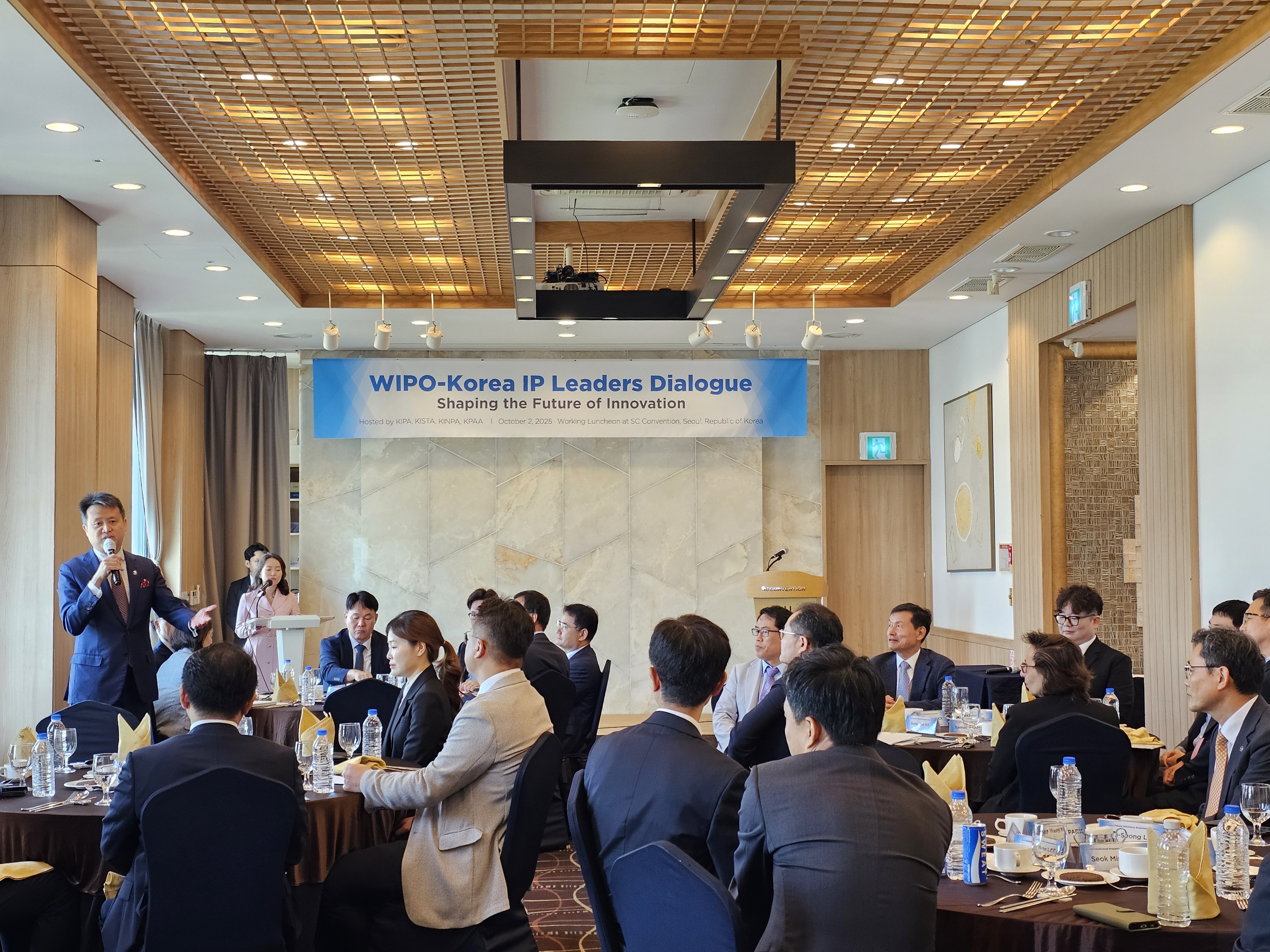![]() ![]() ![]() ![]() 행사명 : WIPO-Korea IP Leaders Dialogue : Shaping the Future of Innovation 일시 : 2025년 10월 2일(목) 11:30~13:00 장소 : 서울 강남 SC컨벤션 아이리스홀 주요내용 : 세계지식재산기구(WIPO) 사무총장 다렌 탕 및 국내 지식재산 유관기관장 오찬 간담회 진행, IP 금융 주제 발표 등 |