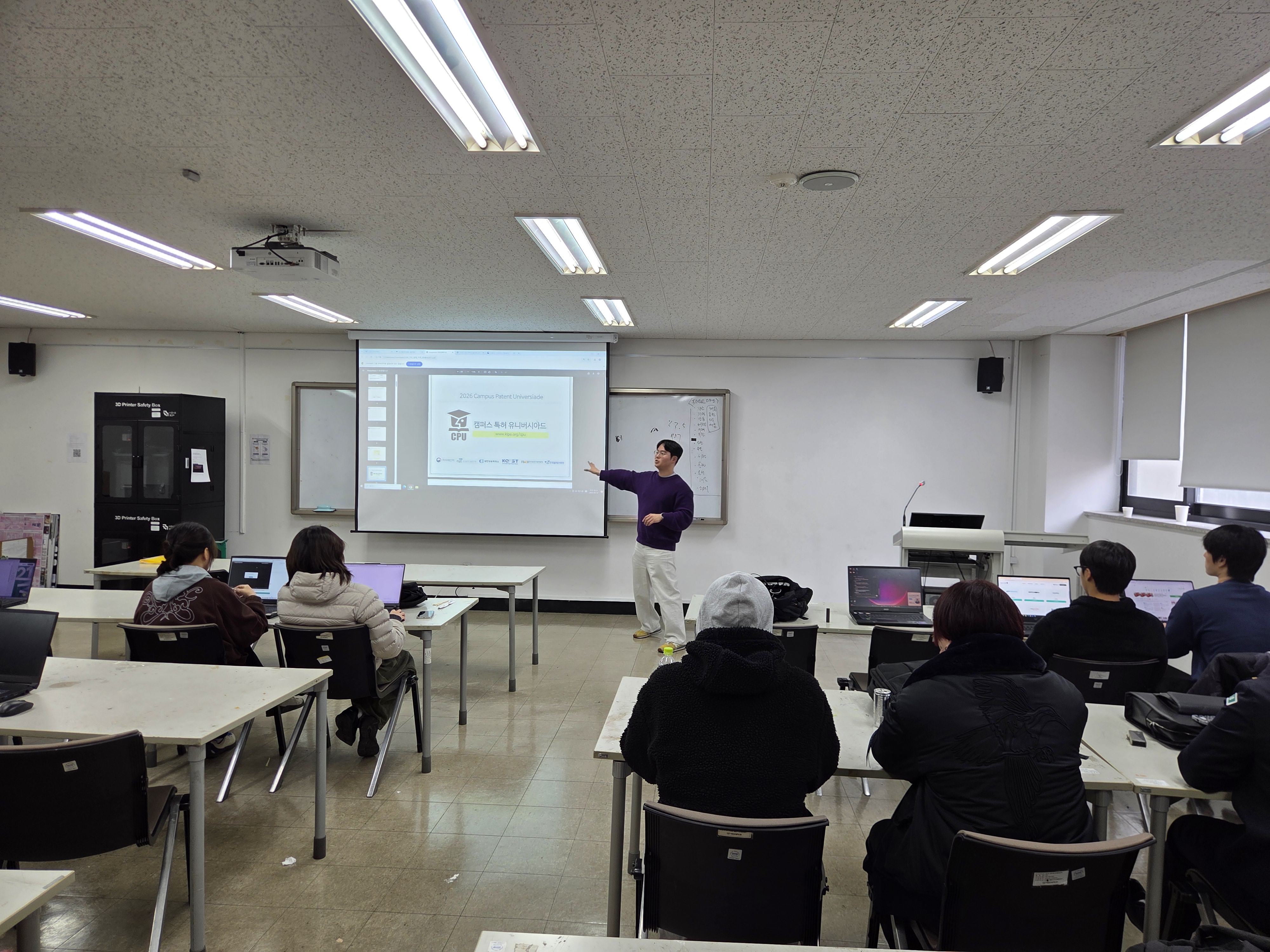 ![]() ![]() ![]() ![]() - 행 사 명 : 2026년 대진대학교 캠퍼스 특허 유니버시아드, D2B, IPAT 설명회 - 장 소 : 대진대학교 예술관 2층 - 일 시 : 2026. 3. 16. - 주요내용 : 대진대 학생 대상 2026년 캠퍼스 특허 유니버시아드(CPU), D2B 디자인페어, 제32회 지식재산능력시험(IPAT) 관련 통합 오프라인 설명회 개최 |