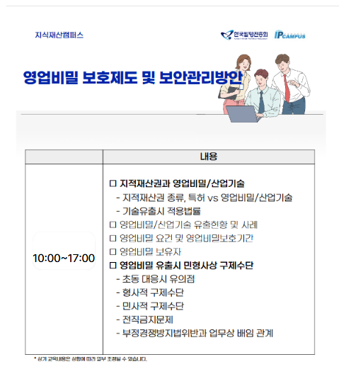 | 제목 | [IP Campus] 영업비밀 보호제도 및 보안관리방안(4/8, 오프라인 교육) | ||||