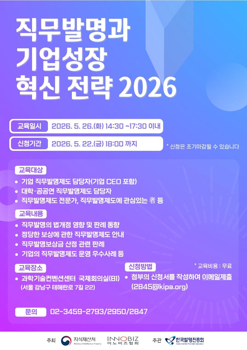 2026년 기업·대학·공공연 대상 직무발명제도 전문가 교육