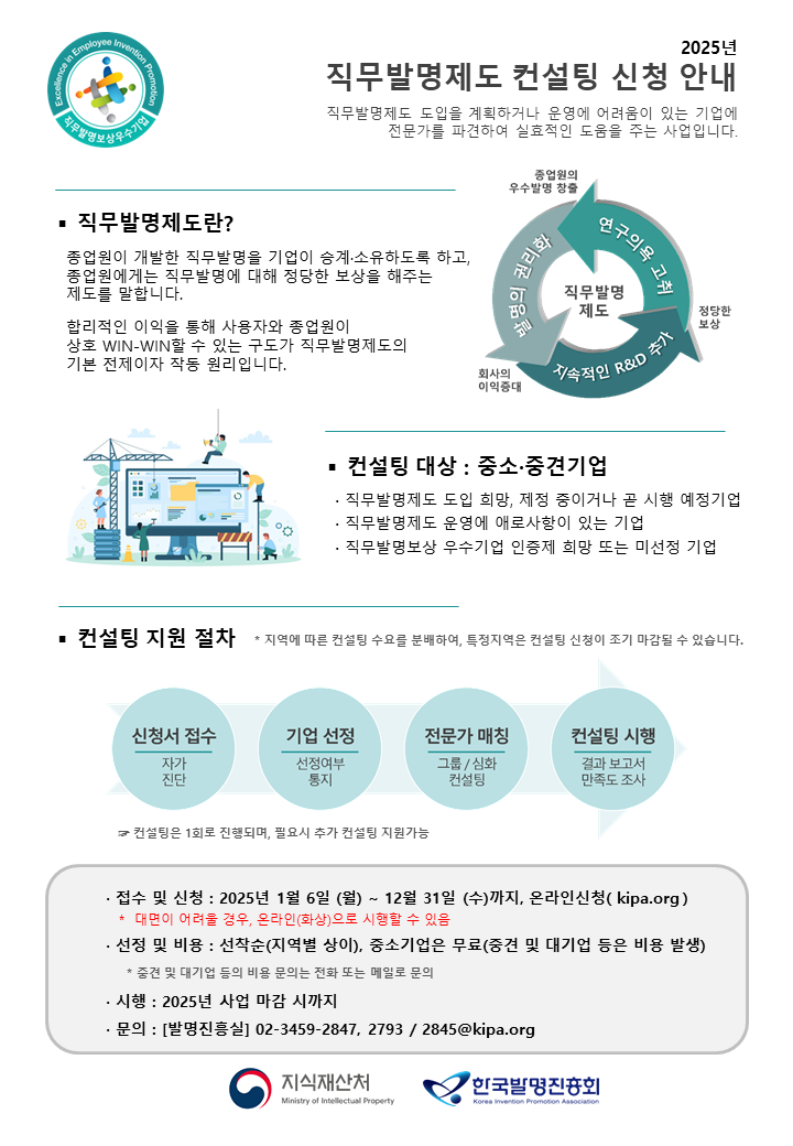 2025년 하반기 맞춤형 직무발명제도 컨설팅 신청 안내