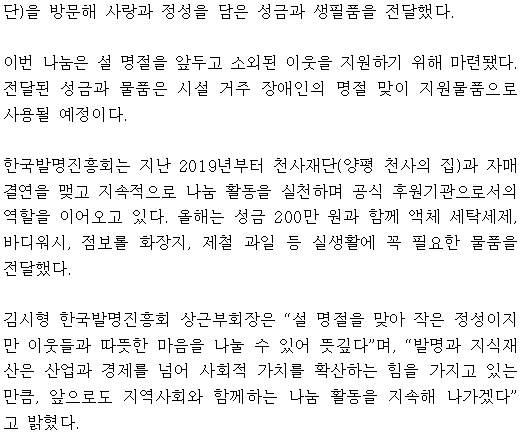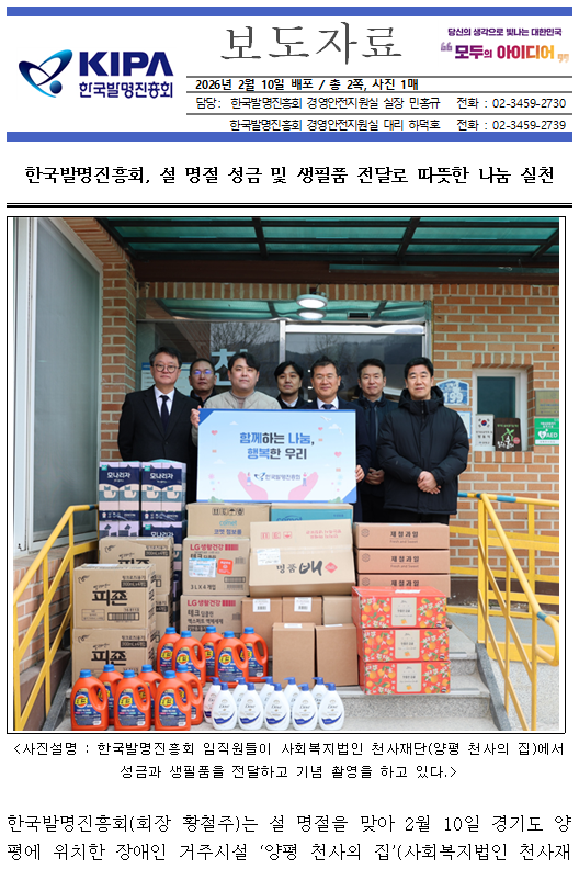 제목 [보도자료] 한국발명진흥회, 설 명절 성금 및 생필품 전달로 따뜻한 나눔 실천