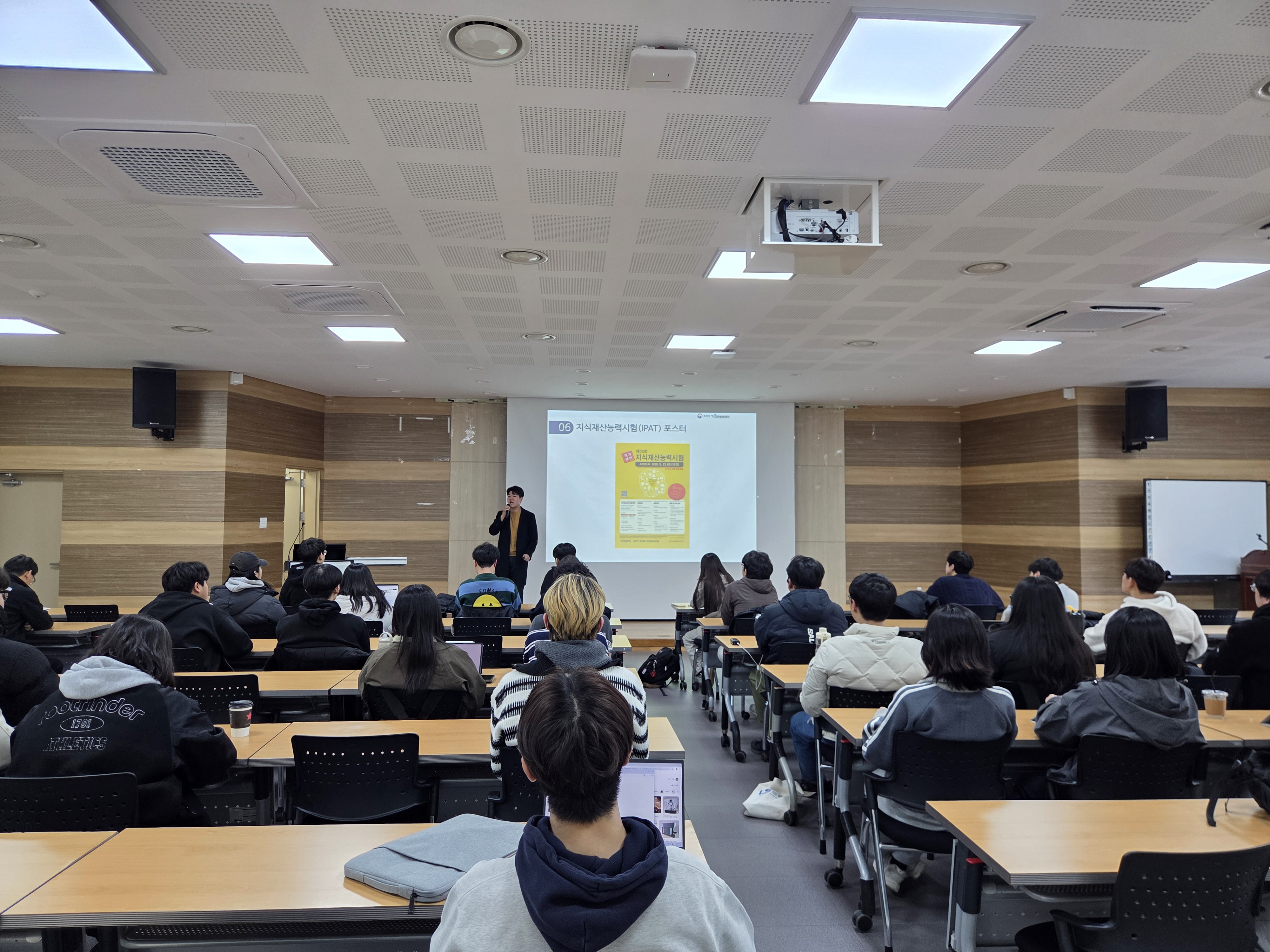 ![]() ![]() ![]() ![]() - 행 사 명 : 2026년 제주대학교 캠퍼스 특허 유니버시아드, D2B, IPAT 설명회 - 장 소 : 제주대학교 친환경농업연구소 3층 대강당 - 일 시 : 2026. 3. 10. - 주요내용 : 제주대 학생 대상 2026년 캠퍼스 특허 유니버시아드(CPU), D2B 디자인페어, 제32회 지식재산능력시험(IPAT) 관련 통합 오프라인 설명회 개최 |