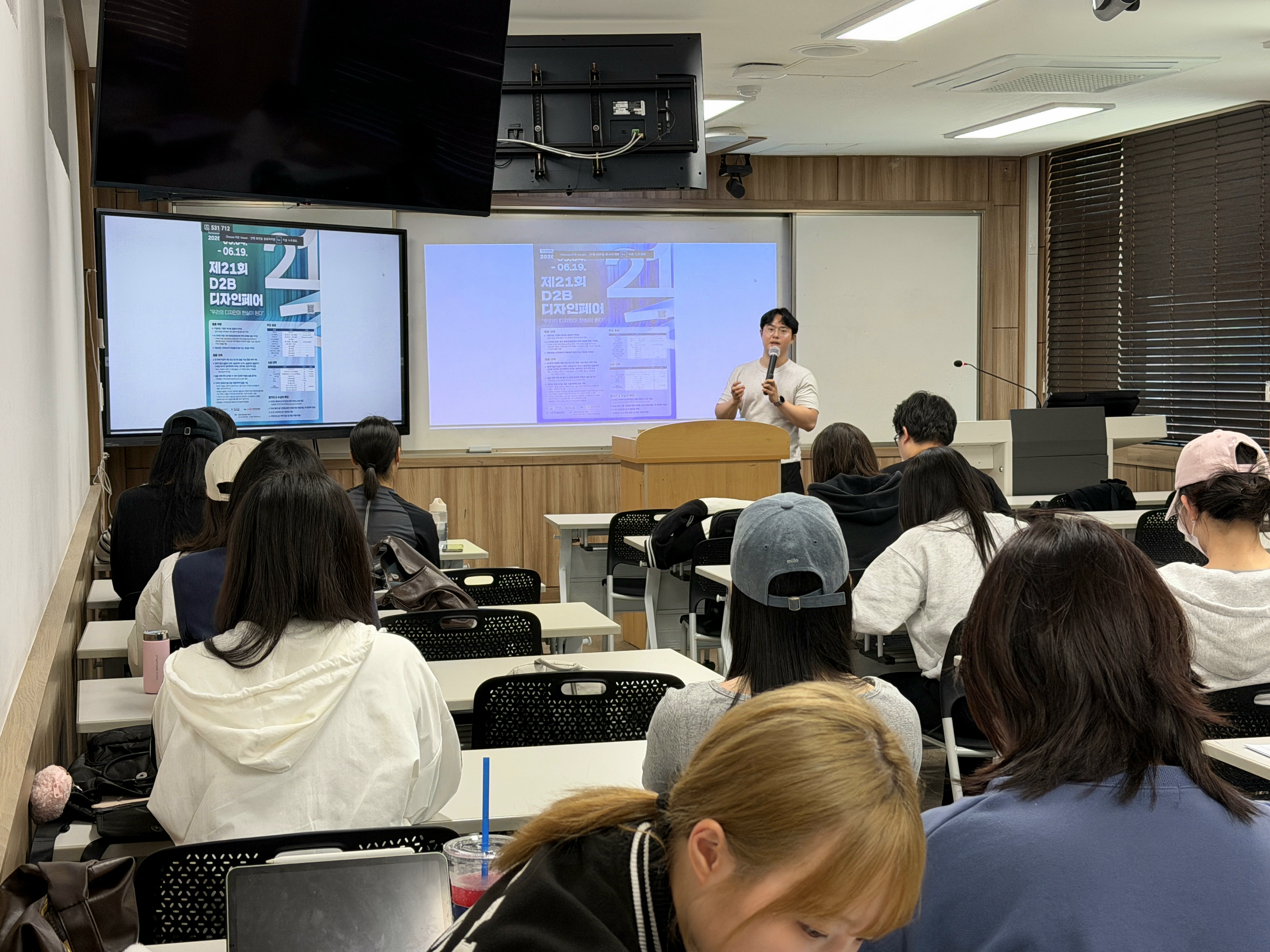 ![]() ![]() ![]() - 행 사 명 : 2026년 경상국립대학교 캠퍼스 특허 유니버시아드, D2B, IPAT 설명회 - 장 소 : 경상국립대학교 법학관 - 일 시 : 2026. 4. 15. - 주요내용 : 경상국립대 학생 대상 2026년 캠퍼스 특허 유니버시아드(CPU), D2B 디자인페어, 제32회 지식재산능력시험(IPAT) 관련 통합 오프라인 설명회 개최 |