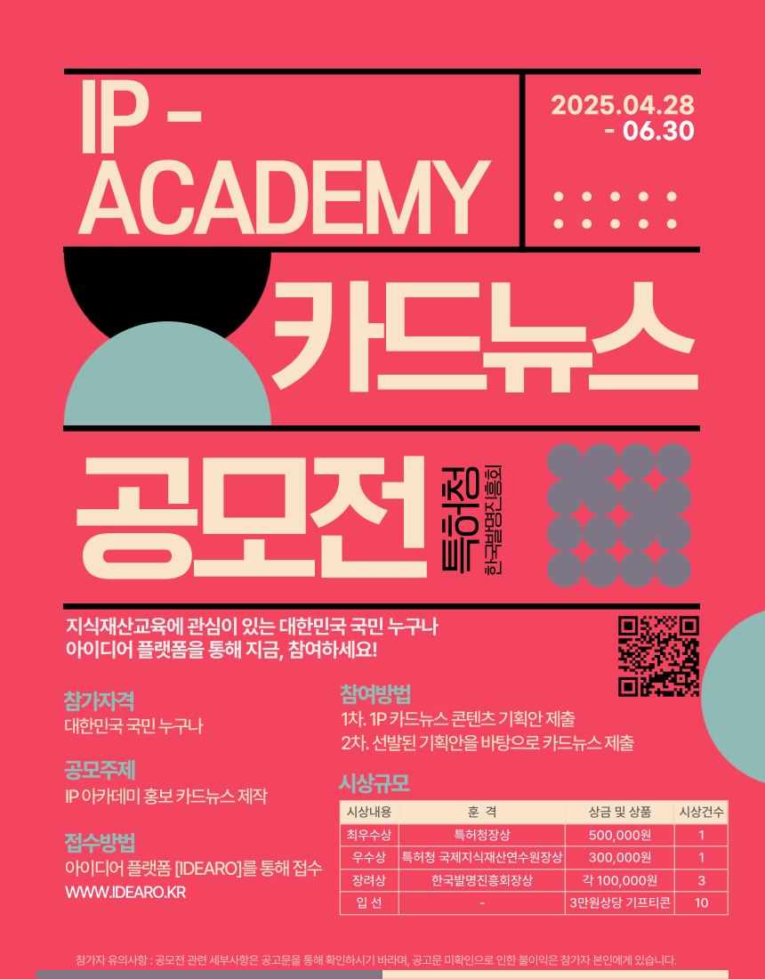 | 제목 | 2025년 IP 아카데미 카드뉴스 공모전(공고연장) | ||||