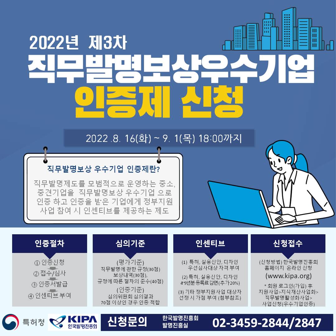 | 제목 | 2022년 제3차 직무발명보상 우수기업 인증제 신청 안내 | ||||