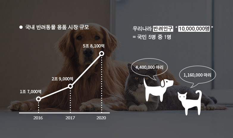 ‘애완동물’이라는 말은 이제 좀처럼 듣기 힘들다. 대신 가족의 의미를 담아 ‘반려동물’이라는 단어를 쓴다. 동물을 대하는 인식이 그만큼 바뀌었다. 관련 시장의 판로 역시 넓어지고 있다. 전체가구의 68%가 반려동물을 키운다는 미국에 뒤지지 않을 만큼 한국의 반려동물 인구와 시장은 무섭게 증가하고 있다. 국내 반려동물과 함께하는 인구는 이미 1,000만을 넘어섰다. 농협경제연구소에 따르면 국내 반려동물 시장은 현재 2조원을 넘어 2020년까지 6조원 규모까지 성장한다고 한다. 그러나 우리의 반려동물들은 불행히도 핵가족화를 넘어 1인 가구, 맞벌이 가구가 나날이 증가하는 시대에 살고 있다. 반려동물을 키우는 사람은 증가하지만 역설적이게도 반려동물에게 할애할 수 있는 시간은 줄어들고 있는 것이다.
