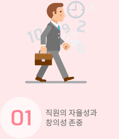 이들이 복지 정책을 만들 때 중요하게 여기는 부분은 업무의 자율성이다. 직원들이 언제 어디서 일하든 업무효율만 나온다면 굳이 주 40시간 사무실 근무를 강요하지 않는다. 여기어때를 운영하는 위드이노베이션은 주 35시간 근무제를 채택해 월요일엔 오후 1시에 출근한다. 온라인 세무 플랫폼 자비스는 한 달에 두 번까지 재택근무가 가능하다. 또한 많은 스타트업이 언제든 정해진 휴가를 쓸 수 있도록 ‘휴가엔 사유가 없다’는 내부 규칙을 만들어 운영하고 있다.